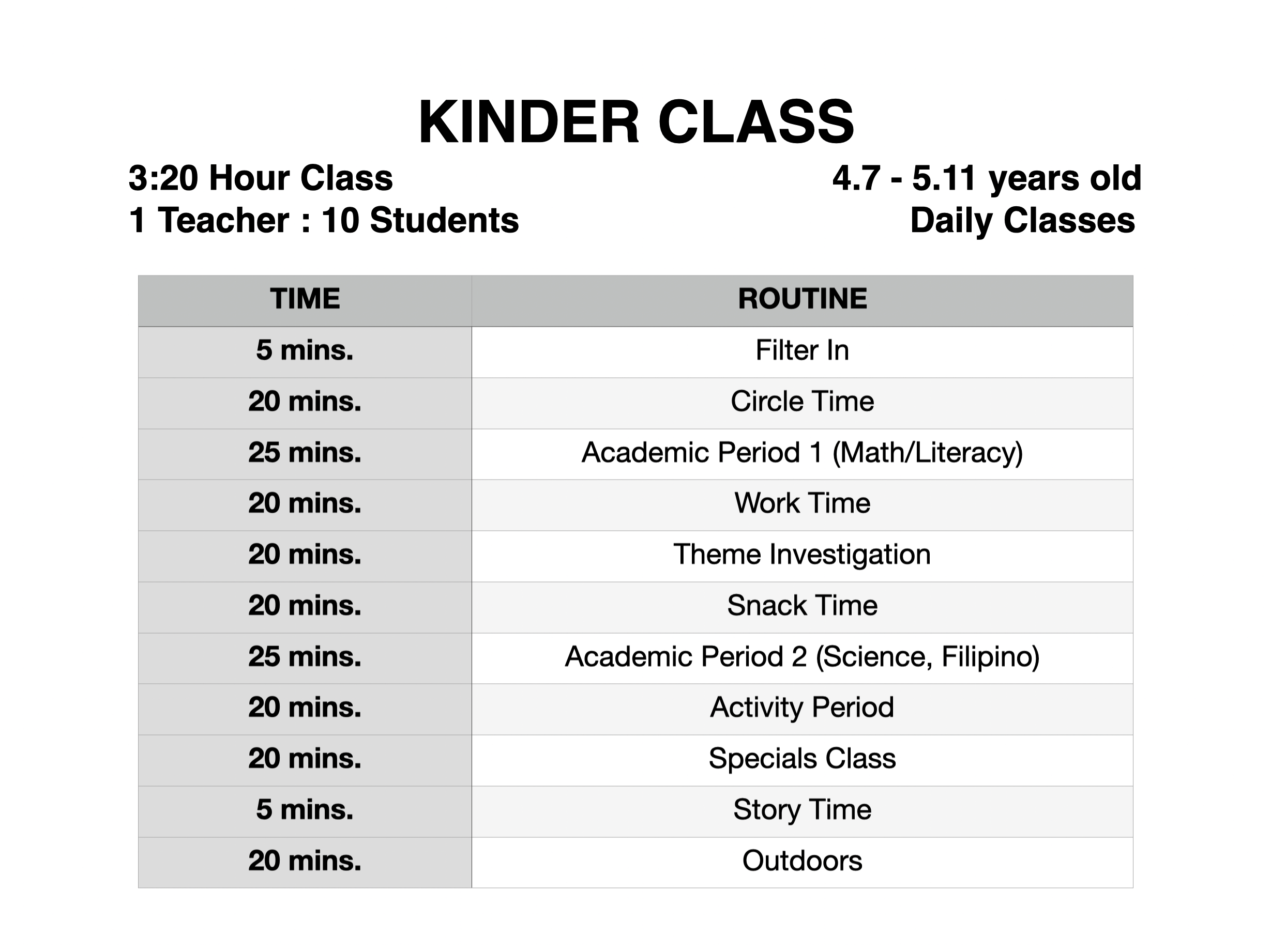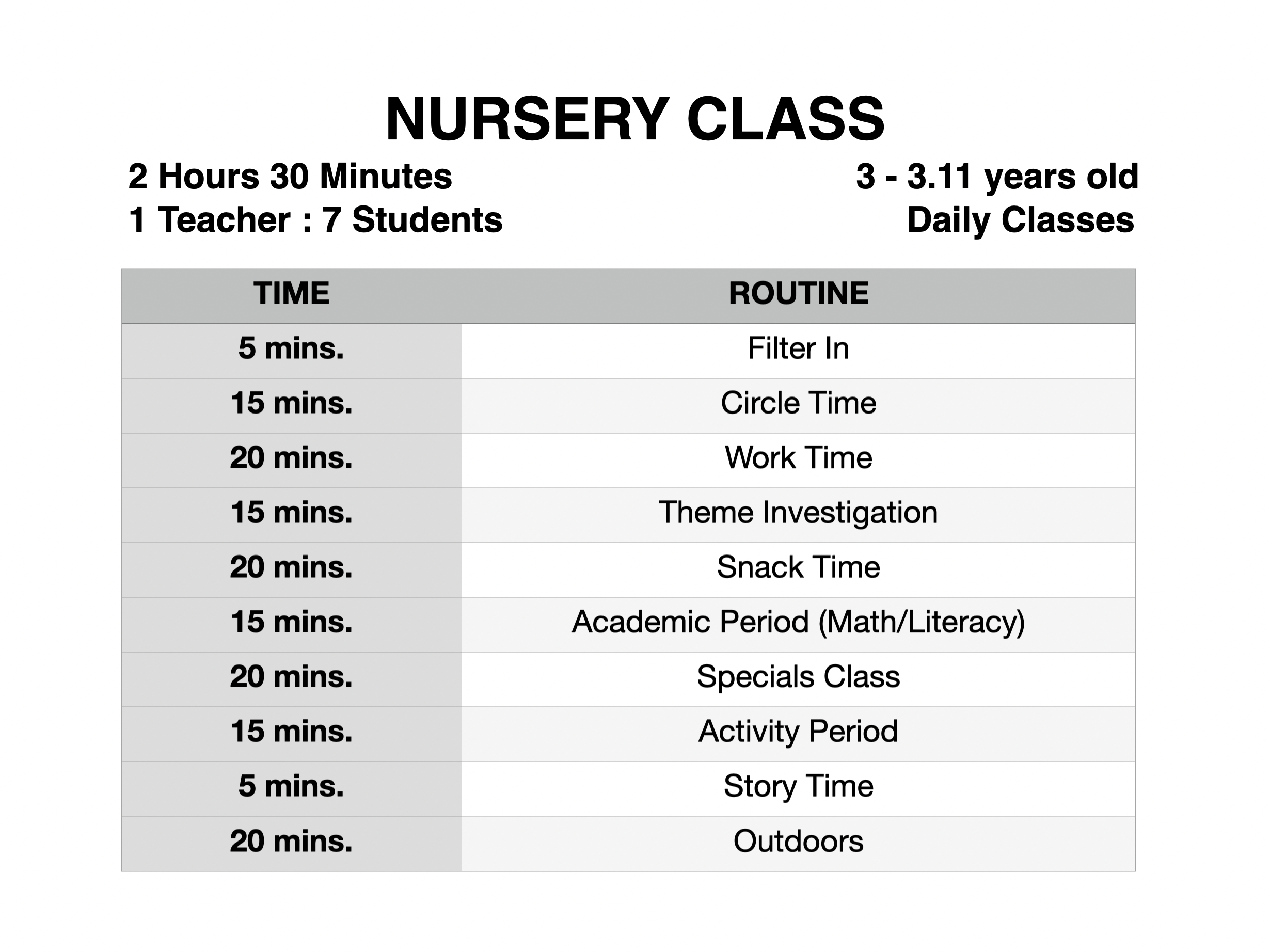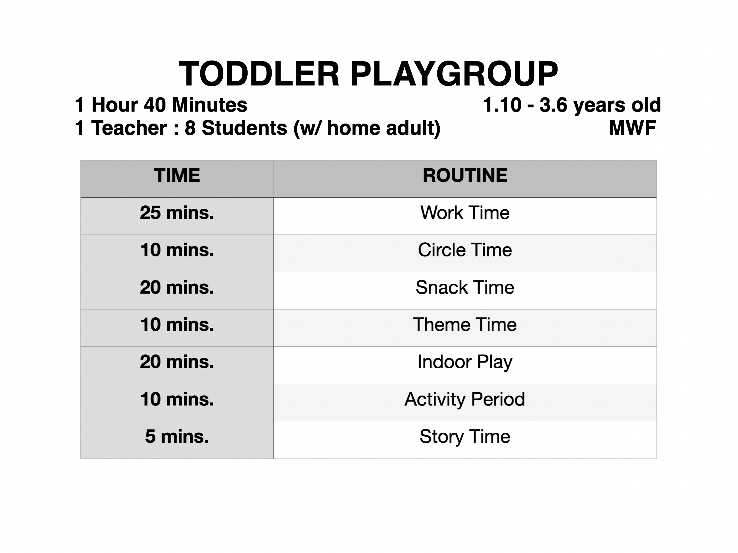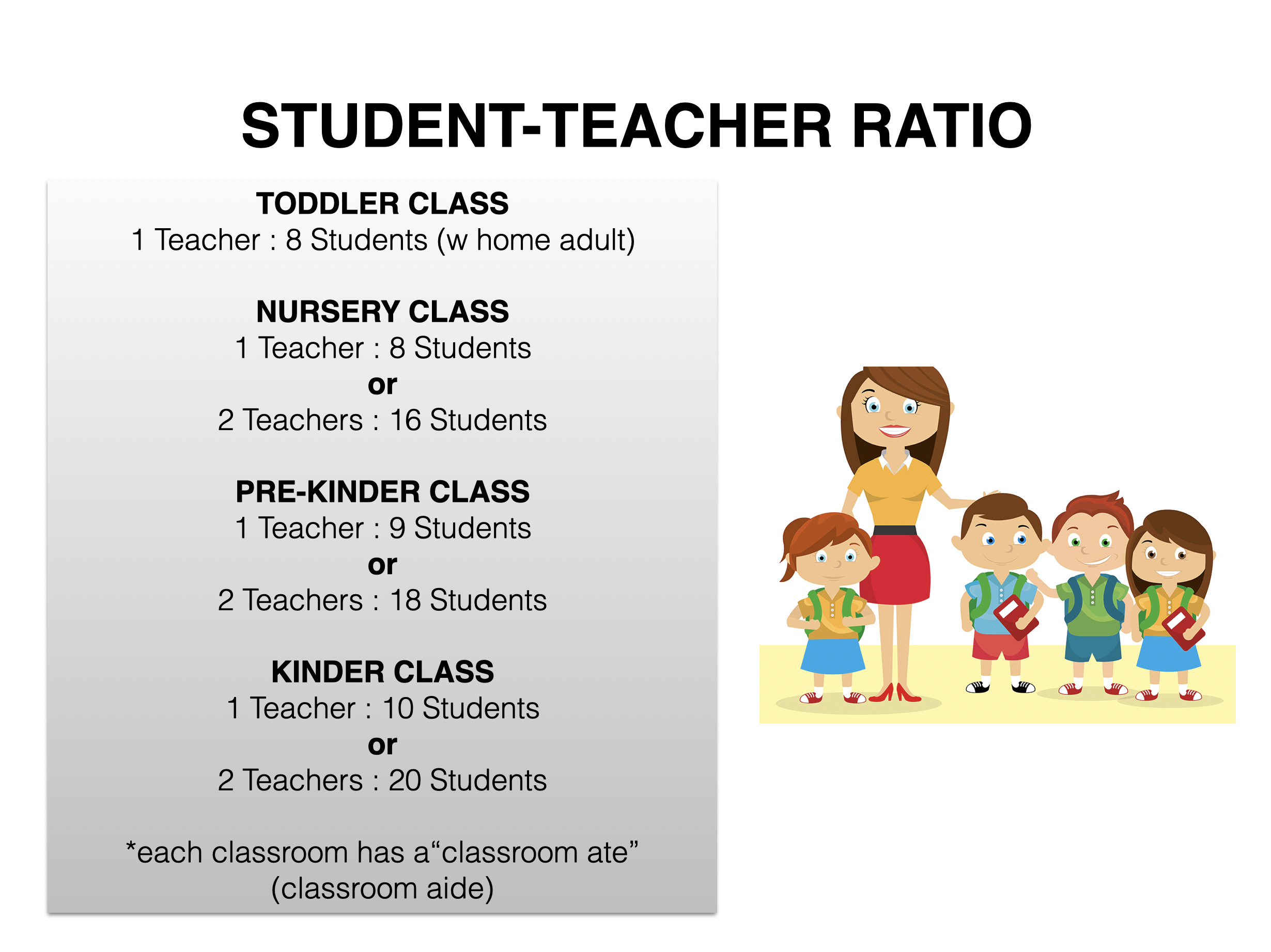 Take a look at what goes on inside the Top Tots Academy classrooms. Read through our slides by clicking on the image below. Tap on the left or right arrow to navigate.